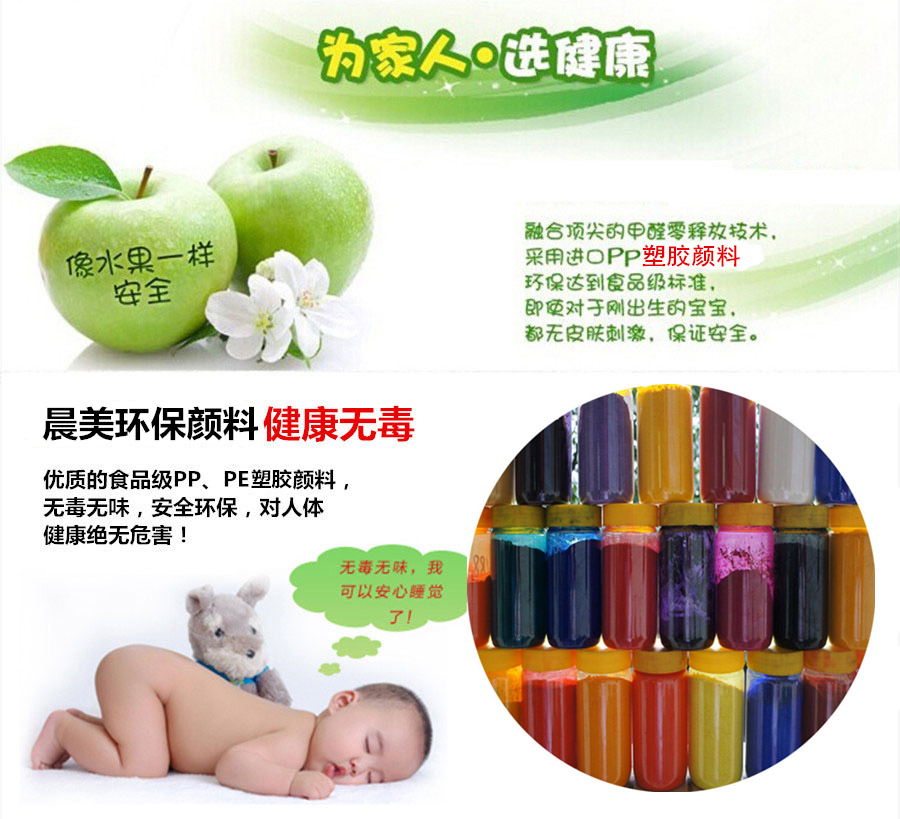 推出食品級(jí)耐高溫顏料。晨美幫助塑料制品行業(yè)結(jié)合自身特點(diǎn)研發(fā)生產(chǎn)更多高品質(zhì)環(huán)保有機(jī)顏料,